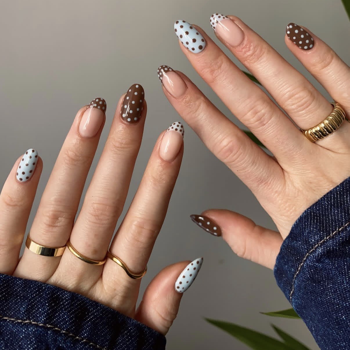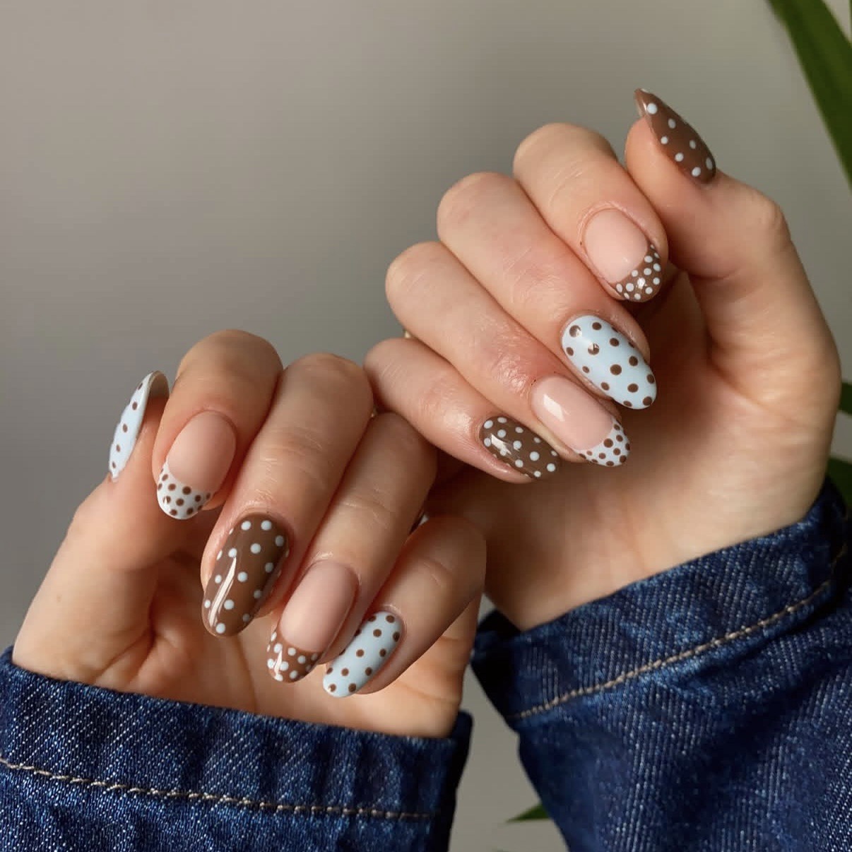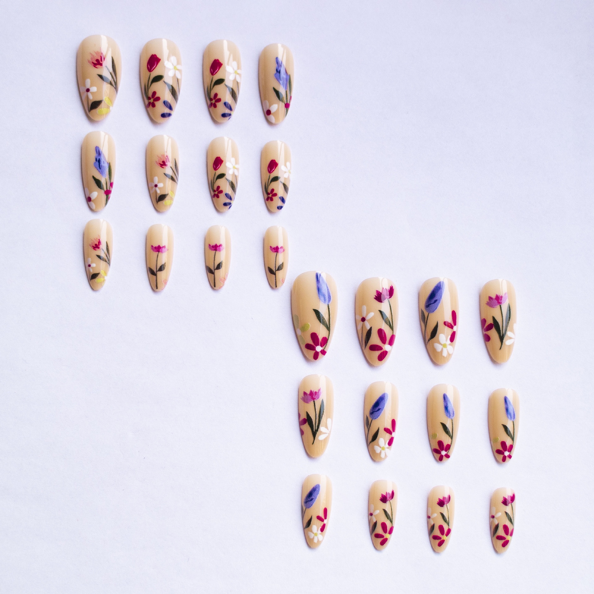 S83 Nude Sunflower Flowers French Tip Almond short nails